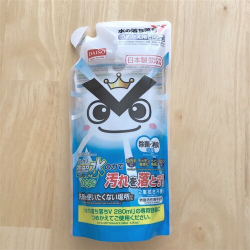 先日、ダイソーでアルカリ電解水を買いました。 ボトルに入ったものを買おうと思っていたのですが、その時は何故かボトルに入ったのが見当たらず詰め替え用を買ってきました。 ちょうど空いたスプレーボトルが家にあったので、詰め替え用でもいいかと思って(…
